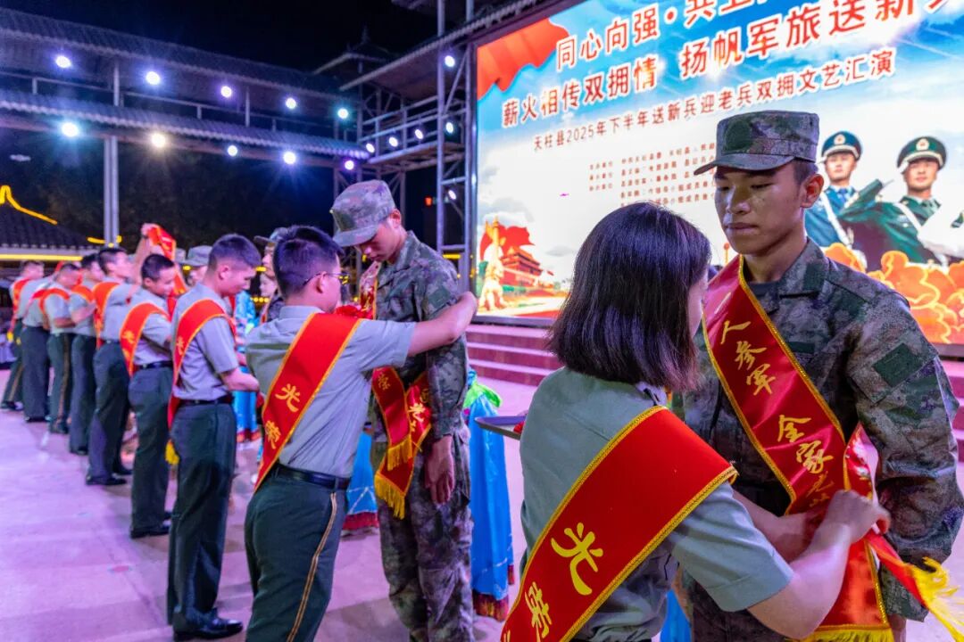 9月16日晚,中共天柱县委、天柱县人民政府、天柱县人民武装部联合主办的2025年下半年“送新兵·迎老兵”双拥文艺汇演在金凤广场举行。晚会以隆重而温情的仪式,送别新兵奔赴军营,迎接退役老兵荣归故里。