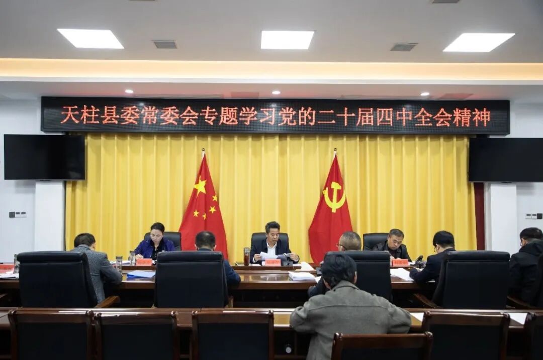 11月6日,县委常委会召开专题会议,传达学习党的二十届四中全会精神。会议强调,要切实把思想和行动统一到党中央决策部署上来,全面对标对表,以砥砺前行、实干争先的姿态推动“十四五”规划高质量收官,高水平谋划好“十五五”规划发展,不断为推进中国式现代化贡献更多天柱力量。县委副书记、县长杨用华主持。县政协主席赖燕明,县委副书记杨长燕,县委常委,县政府、县政协有关领导参加。会议指出,各级各部门要深刻领会、准确把握党的二十届四中全会的重大意义和重大成果,切实把思想和行动统一到全会精神上来,不折不扣推动党中央、省委和州委各项决策部署在天柱落地见效。会议强调,要深刻领会、准确把握“十五五”时期经济社会发展的主要任务和重大举措,充分发挥区域优势,抢抓高质量发展机遇,积极谋划落地一批打基础、利长远重大工程项目,统筹推进城乡基础设施互联互通,加快推动传统产业转型升级,深化农文旅融合发展,切实以砥砺前行、实干争先的姿态推动“十四五”规划高质量收官,高水平谋划好“十五五”规划发展,奋力在中国式现代化进程中开创天柱发展新局面。会议强调,学习好、宣传好、贯彻好党的二十届四中全会精神,是当前和今后一个时期的重要政治任务。全县上下要系统谋划、周密部署,以上率下、深学细悟,广泛宣传、凝聚共识,以更大力度、更强声势,将学习成果转化为推动工作的内在动力,确保党的二十届四中全会精神在天柱落地生根、开花结果。