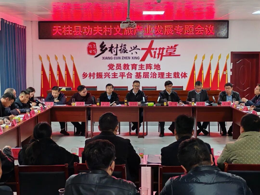 2月26日,天柱县功夫村文旅产业发展专题会在渡马镇功夫村召开,县委书记赵明波出席并讲话,县委副书记吴量主持会议,县领导蒋文武、乐华胜、龙腾、石鑫磊、曾宪华出席会议。