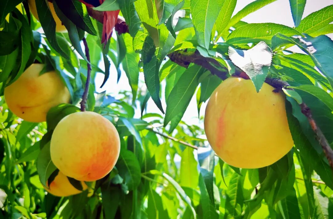 龙园桃园从2018年开始种植,以“错峰种植、多元供给”为特色,培育了蟠桃、水蜜桃、黄桃等十余个优质品种,让采摘期从盛夏延续至深秋。眼下,第二批水蜜桃正值最佳赏味期,圆润饱满的果实挂满枝头,像一个个小灯笼点缀在绿叶间。