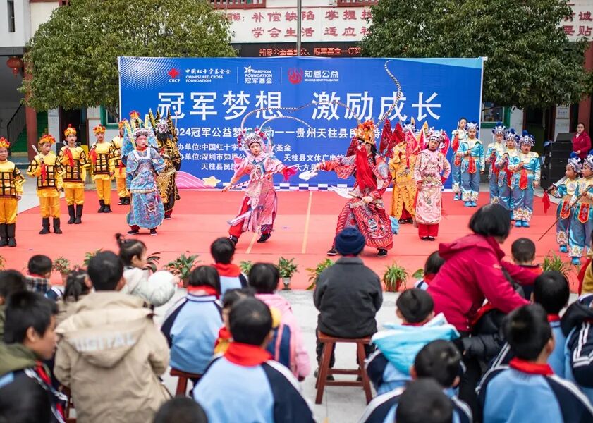 近日,天柱县民族特殊教育学校开展“冠军梦想 激励成长”主题活动,相关爱心机构人士参加,一场别开生面的侗戏在学校精彩上演。特殊的演员,独特的技艺、精彩的表演,赢得了台下公益人士和师生的阵阵掌声。