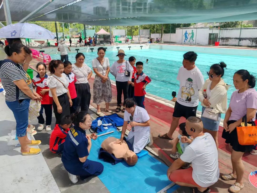 授课结束后,活动还邀请游泳教练和医护人员到现场,分别教授孩子们游泳和心肺复苏等急救技能,确保参与的学生和家长都能熟练掌握防溺水“六不准”。通过专业的指导和实践操作,学生和家长们不仅增强了安全防范意识,还培养了基本的防溺水自救技能和应急呼救能力。