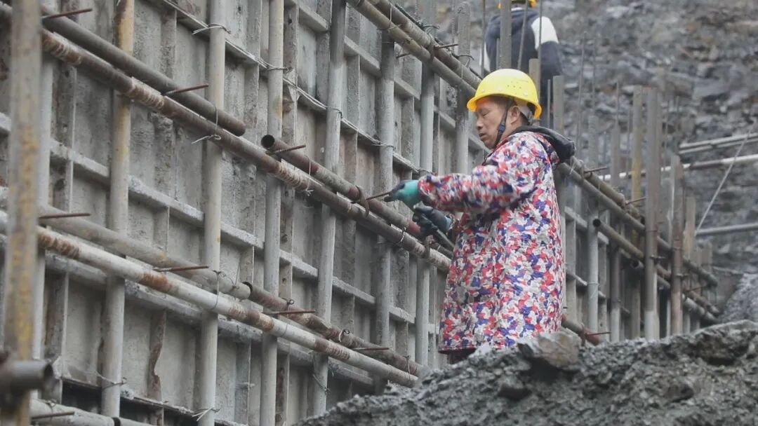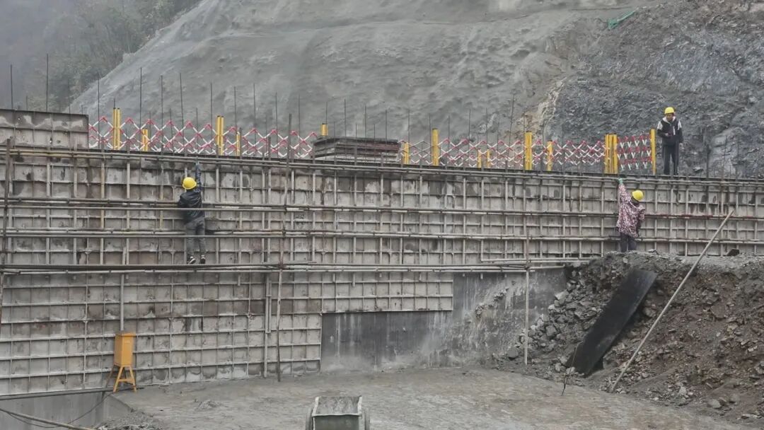 目前,铜鼓水库坝体廊道浇筑已达13米,正朝着15米推进。在施工现场,石料车来回穿梭输送石料。工人们正在架设浇筑管网、搭建钢筋挡墙。与此同时,4.2公里的输水隧洞正分4个工作面同时施工推进。