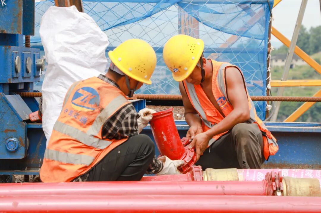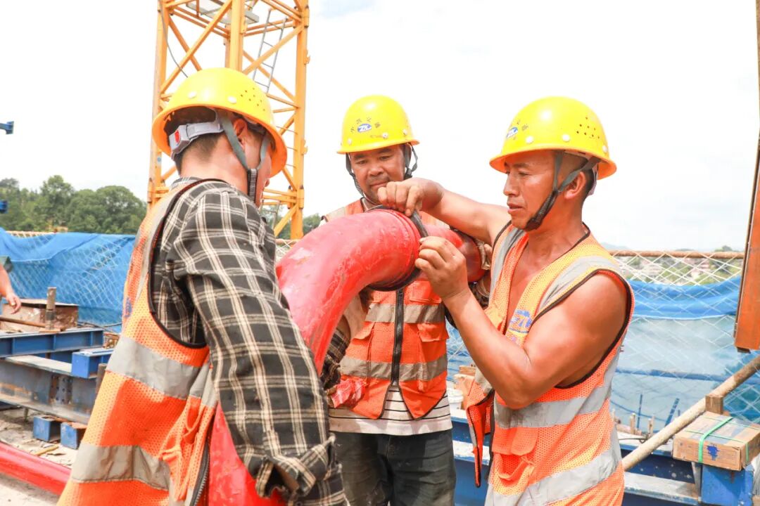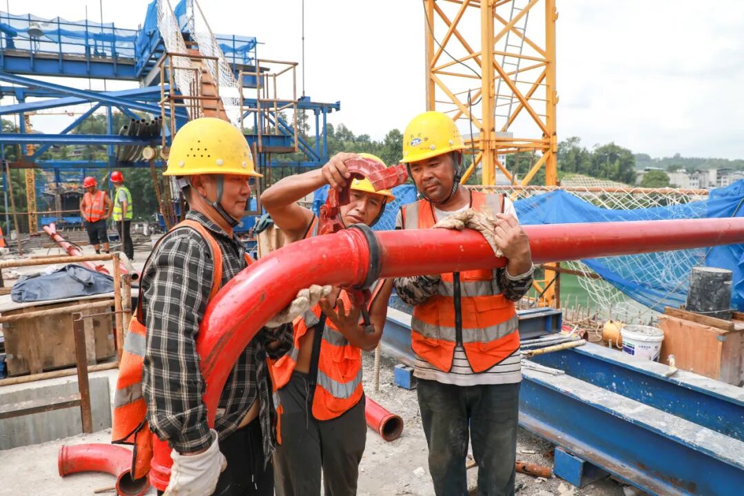 7月28日,骄阳似火,热浪袭人。在天柱县江东清水江大桥建设现场,机器轰鸣,30余名工人挥汗如雨,坚守岗位,与酷暑较量,全力抢抓施工进度。作为连通江东镇与白市镇的“黄金通道”,江东清水江大桥建设意义重大。该桥全长655米,其中主桥长293米,引道长362米,总投资4658万元。建成后将极大缩短两岸通行距离,不仅便利群众出行,更有力促进当地农产品运输和区域经济社会发展。施工现场热火朝天,工人们紧张有序地作业,吊机挥舞着巨臂,焊花在空中四溅,在热浪蒸腾中紧张有序地忙碌着。“目前,工程总量已完成60%以上,进入关键攻坚期。”项目常务副经理龙毅介绍,“桥面主体结构施工正全速推进,预计在今年底实现通车目标。”为应对持续高温,项目部科学制定保障措施。龙毅表示:“我们采取‘早开工、晚收工、避开午间高温时段’的弹性作业模式,并配足防暑降温物资,全力保障施工人员健康安全和工程高效推进。”“下一步,我们将继续科学调配人力物力,在确保安全和质量的前提下,全力以赴抢抓进度,确保项目按期完成。”龙毅表示。