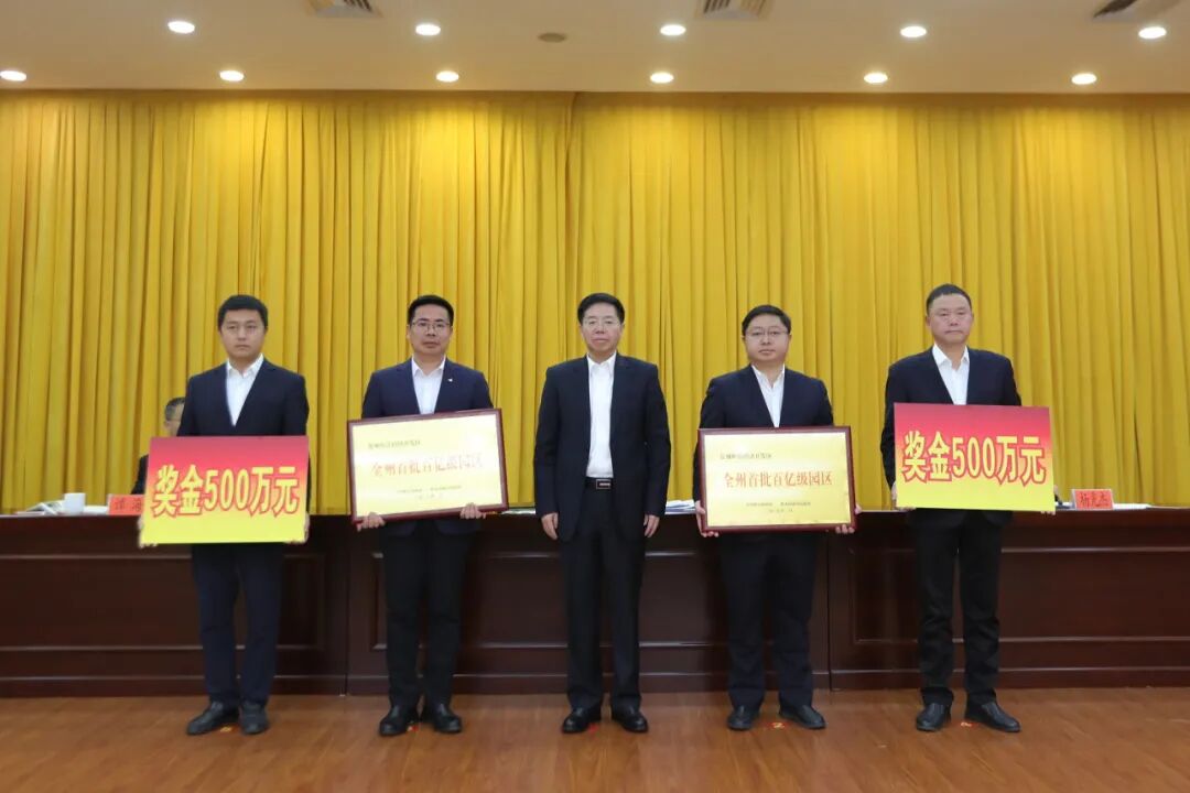 在热烈的掌声中,李建向获得“全州首批百亿级园区”的凯里市和台江县颁发了奖牌。王建华、龙家胜分别通报了全州2024年招商引资和优化营商环境工作、新型工业化发展情况并安排2025年工作。谭夔、龙滨分别代表凯里市和台江县作交流发言。